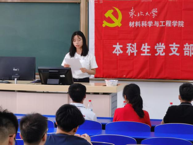 为进一步贯彻《中国共产党发展党员工作细则》,稳步推进基层党建工作深入开展,经上级党委预审同意,6月16日中午,材料学院本科生党支部于大成103教室召开支部党员大会,讨论接受发展对象韩璐、王晶锐两位同志为预备党员。会议由党务负责人周琦开主持,支部8名党员、68名预备党员及2名2021年六月份发展对象参加会议。