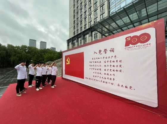 活动开始,党员代表孙才翔首先介绍了本次党日活动的主要内容,其中包括了“九宫格”、“解手链”等趣味活动,同学们在运动中发扬了团结拼搏、互帮互助的精神,增强了团队意识和彼此之间的协作。趣味活动结束后,支部委员会成员为每位党员赠送了政治生日贺卡,并表示每位党员都要时刻牢记党员身份,永葆党员本色。同学们纷纷表示,在建党100周年之际收到政治生日贺卡,更加深刻认识到身为一名党员的责任和使命。活动最后,全体党员来到综合楼北广场重温入党誓词,在领誓人梅亦洵的带领下,党员们面向党旗庄严宣誓。
