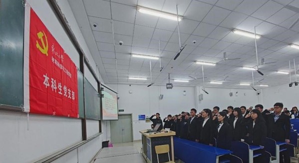 随后,材料学院本科生党支部宣传委员姜媛针对本次大会学生发言情况作出了评价,在鼓励大家的成长的同时,也要求全体党员加强理论知识的学习。接着,材料学院本科生党支部书记杨壹程对新老党员们提出了要求,他表示一名党员就是一面旗帜,勉励各位预备党员同志能够遵守党规党纪,提高党性修养,时刻以党员标准要求自己,积极发挥先锋模范作用。最后,材料学院本科生党支部组织委员李刚带领新同志面对党旗宣读入党誓词。