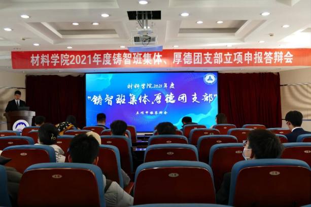 为引领广大学生自觉践行“厚德为料,铸智成材”的院训精神, 材料学院2021年度“铸智班集体·厚德团支部”立项申报答辩会于11月24日在知行楼634顺利召开。材料学院党委副书记兼副院长贺翔,学生工作办公室主任兼研究生辅导员孙巍巍,团委书记兼中法专业辅导员董磊,学生工作办公室副主任兼2021级辅导员姜媛,2018级辅导员杨壹程,2019级辅导员李刚,2020级辅导员方程程,中法专业兼职辅导员张子越,2019级兼职辅导员李亚津莅临现场指导。