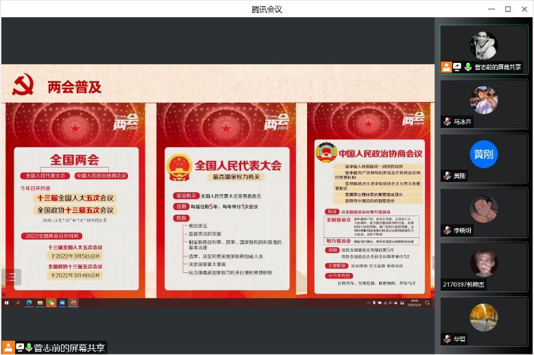为深入贯彻全国两会精神,引导支部成员关注时事热点,3月24日晚,材料学院硕士2106党支部于线上开展了以“学习全国两会精神,深化党性修养”为主题的党日活动,支部全体成员参与此次活动。