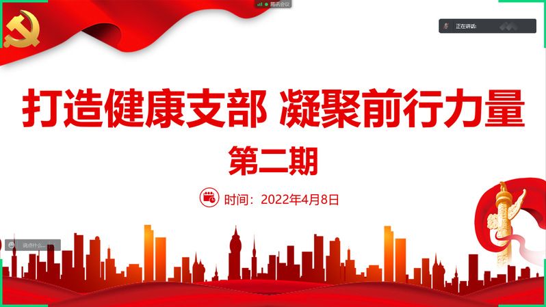 为引导支部成员自觉用好中医养生、保健科学知识,提升同学健康保障能力和水平,4月8日晚,材料学院硕士2006党支部于线上开展“打造‘健康支部’,凝聚前行力量”健康知识讲座,支部全体成员参与本次活动。