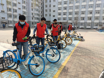 “服务师生” 彰显模范作用 校园封闭管理期间,学校后勤工作人员工作强度大,为更好的服务师生,保证服务师生有温度、无死角,“春晖”学生党员志愿服务队着眼于身边力所能及的小事,组织志愿者进行共享单车规范摆放、会议室清洁等;创新“领航计划”学业志愿帮扶活动形式,提升线上课程质量,营造良好学习氛围,让师生的科研、学习、工作更高质量开展。