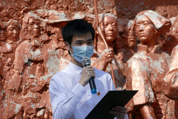 侯雨珊作为新团员代表上台发言,她号召全体新团员发扬共青团的优良传统,始终保持昂扬的精神状态,坚定信念、扎实从学、立志成才,以实际行动践行自己的入团誓言。