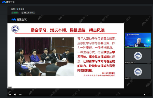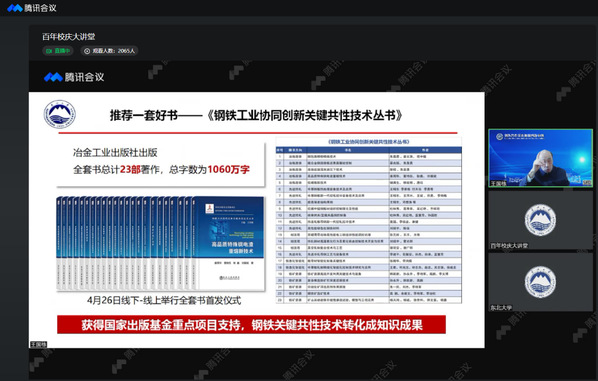 5月15日上午,中国工程院院士王国栋教授以视频直播形式面向全校本科生作题为“把握时代机遇 争做有为青年”的报告。本次报告会作为东北大学“百年校庆工程”系列活动“百年校庆大讲堂”的内容之一,由东北大学主办,学校东北大学发展规划与学科建设处、东北大学学生工作处、东北大学科学技术研究院、东北大学百年校庆办公室、材料科学与工程学院承办,海内外校友、师生2800余人线上观看。