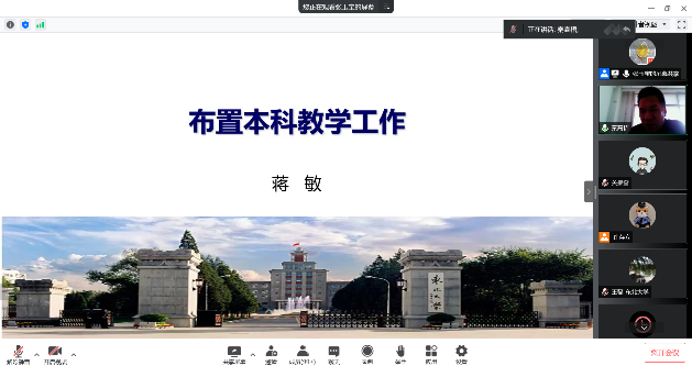 学院本科教学副院长蒋敏对2022年春季学期后续本科教学工作安排作详细介绍,对理论课教学进度、实验课教学方式、考试形式等方面调整以及毕业设计(论文)后续工作调整方式做重点讲解,着重强调各课程要保证课程教学质量,要注意实验教学安全,要注重考核公平性,要强化毕业设计(论文)过程管理及分类考核。学院研究生副院长王建军对研究生毕业工作审核、线上教学工作、硕博培养方案修订以及研究生日常管理等方面进行介绍,要求各指导教师要强化研究生导师第一责任人制度,能经常性关心研究生日常生活和科研进度,掌握思想动态、扎实推进科研工作。