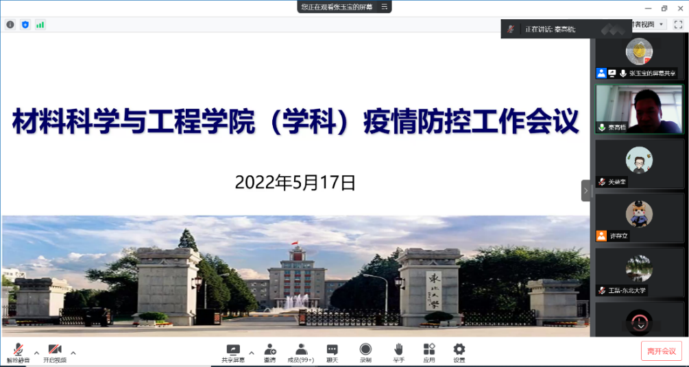 5月17日,材料科学与工程学院通过腾讯会议召开材料学科全体教职工疫情防控工作会议。材料学院、RAL国家重点实验室、EPM教育部重点实验室所有材料学科教职工参加会议,会议由学院党委书记张玉宝主持。