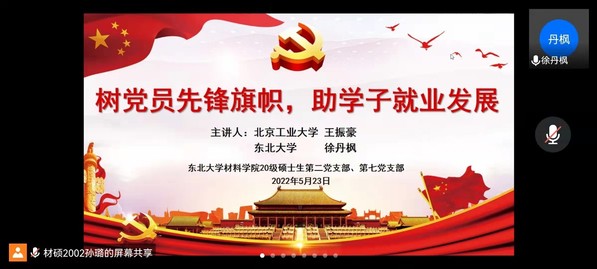 本次活动由材硕2002党支部书记孙璐主持。本次活动邀请到北京工业大学硕士毕业生王振豪和东北大学硕士毕业生徐丹枫。两位主讲人从自身的求职经历和心得出发,从就业过程中的简历制作、公司筛选和问答技巧等多方面进行了由浅入深的讲解。王振豪进一步对面试过程中面试官常见的提问形式,进行了详尽的应答技巧分享。徐丹枫表示,面试经验是逐步积累的结果,因此必须进行大量针对性训练才能更好地展现自己,获得理想的就业岗位。