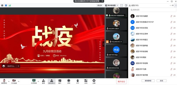 为了引导同学们了解当前国内疫情防控局势,深入学习并理解伟大抗疫精神,9月16日晚,材料学院本科生第一、第二党支部于线上开展了以“抗击疫情,‘疫’不容辞”为主题的党日活动,党支部全体成员参与本次活动。