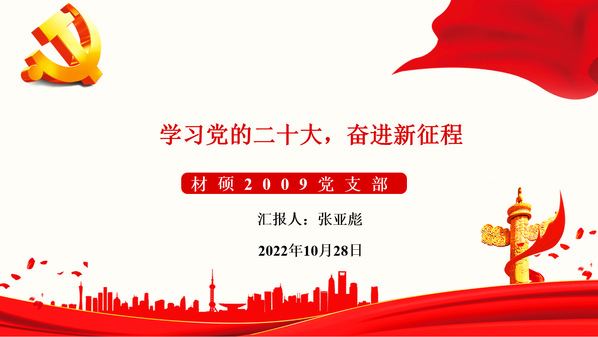 为学习宣传贯彻好党的二十大精神,进一步提升党支部的凝聚力和战斗力,10月28日晚,材硕2009党支部于线上开展了以“学习党的二十大,奋进新征程”为主题的党日活动,支部全体成员参加本次活动。