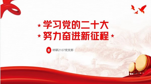 为深入学习宣传贯彻党的二十大精神,进一步加强支部成员的责任意识,提高支部成员的党性修养,11月6日晚,材料学院硕士2107党支部于线上开展了以“学习党的二十大,努力奋进新征程”为主题的党日活动,支部全体成员参加此次活动。