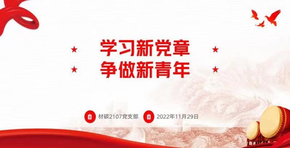 为深入学习新修订的《中国共产党章程》,进一步增强支部成员的责任意识和党性修养,11月29日晚,材料学院硕士2107党支部于线上开展了以“学习新党章,争做新青年”为主题的党日活动,支部全体成员参加此次活动。