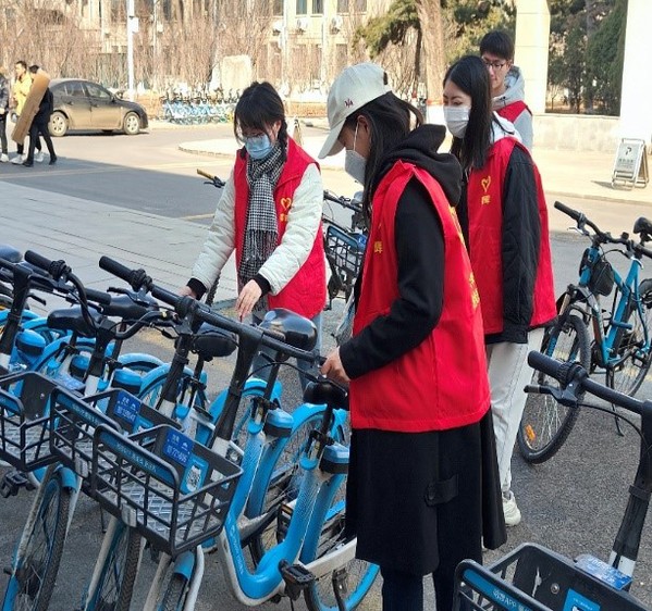 春晖学生党员志愿服务队负责人对参与的志愿者们进行分组、任务分配以及时间安排,志愿者们将知行楼、综合楼、EPM实验室等场所的自行车移动到规定位置并摆放整齐,以保障同学们的正常出行,充分体现了“哪里需要我们,哪里就有我们身影”的志愿精神。
