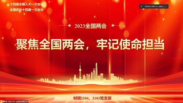 为学习贯彻习近平总书记在党的二十届二中全会上的重要讲话和全国两会精神,进一步提高支部成员的党性修养,3月22日晚,材料学院硕士2103、2104党支部于线上联合开展了以“聚焦全国两会,牢记使命担当”为主题的党日活动,支部全体成员参加本次活动。