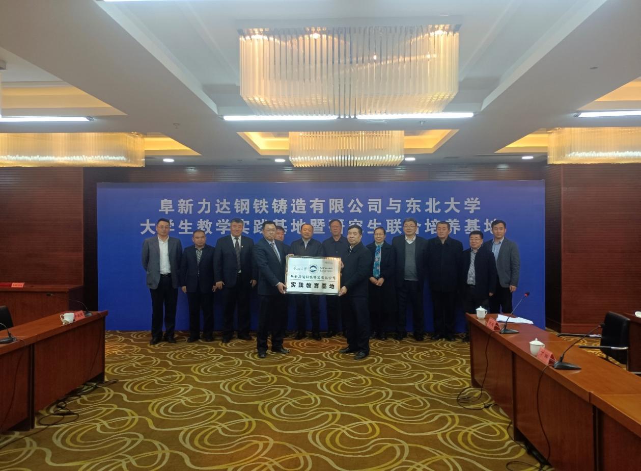 双方就科技创新、人才培养、项目建设等进行深入交流,共建东北大学—阜新力达钢铁铸造有限公司大学生工程实践教育基地和研究生联合培养基地。张玉宝介绍了东北大学材料学院的专业优势、人才培养成果和未来发展态势,希望双方能够以共建教学实践基地为契机,深入推进产学研用路径探索,在构建校企合作协同育人机制、企业人才培养、技术服务、成果转化、校企师资队伍共建等方面密切合作,整合资源、优势互补,实现共赢。严纯建介绍了乐阜新力达钢铁铸造有限公司的发展情况,并表示,校企合作优势互补是企业实现长期良性发展的重要战略举措,未来将切实承担起基地共建职责,多交流、多互动,实现互帮互利。