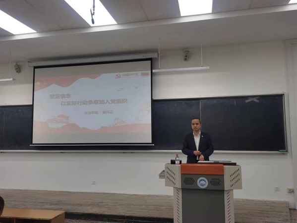 本次培训由方程程主持。培训开始,夏风云从正确的入党动机、入党条件以及入党手续这三个方面为同学们详细讲授了入党积极分子应如何“端正入党动机,以实际行动争取早日加入党组织”。接着,他提到了奋战在一线的医护人员张定宇、赵华等战疫英雄的事迹,引导同学们向英雄学习,发挥模范带头作用。随后,他带领同学们观看了短视频《共产党员是怎样炼成的》,加深了同学们对入党流程的理解。最后,夏风云表示,希望同学们按照党员标准不断严格要求自己,在实践中磨练自己,立志做有理想、敢担当、能吃苦、肯奋斗的新时代好青年,以实际行动争取早日加入党组织。
