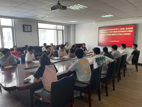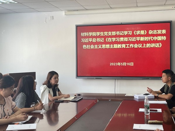 为深入开展学习贯彻习近平新时代中国特色社会主义思想主题教育,牢牢把握“学思想、强党性、重实践、建新功”总要求,进一步提高党员的党性修养,5月16日中午,材料学院学生党总支于知行楼424室深入学习习近平总书记在学习贯彻习近平新时代中国特色社会主义思想主题教育工作会议上的重要讲话精神,材料学院党委组织员商淼、全体学生党支部书记及本科生党务负责人参加此次会议。