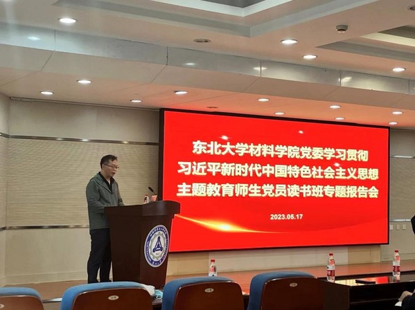 5月17日下午,材料科学与工程学院党委在知行楼634会议室召开学习贯彻习近平新时代中国特色社会主义思想主题教育专题师生党员读书班第三场报告会,材料学院党委书记张玉宝出席会议,会议由材料学院党委副书记兼副院长贺翔主持。本场专题报告会邀请到了东北大学研究生院副院长兼党委研究生工作部部长、马克思主义学院教授丁义浩为学院党员师生代表作题为《挑战VS应战:学习习近平关于意识形态安全的重要论述》的专题报告。