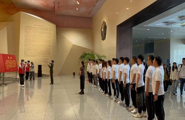 上午,实践团前往抗美援朝纪念馆。实践团成员在“抗美援朝、保家卫国”浮雕群像前肃穆而立、鞠躬默哀,向中国人民志愿军先烈敬献花篮,表达对革命先烈的深切怀念和无限敬仰之情,并面向鲜艳的党旗,庄严举起右拳,重温入党誓词。随后,实践团在解说员的带领下参观了抗美援朝纪念馆,聆听中国人民志愿军在朝鲜战场上与朝鲜人民并肩作战的英雄事迹,深入回顾党的奋斗历程,共同感受志愿军将士不畏牺牲、保家卫国的英雄气概。大家纷纷表示对抗美援朝精神和抗美援朝的伟大历史意义有了更深入的认识,对革命先烈艰苦奋斗、不怕牺牲的坚定意志充满了敬佩之情。