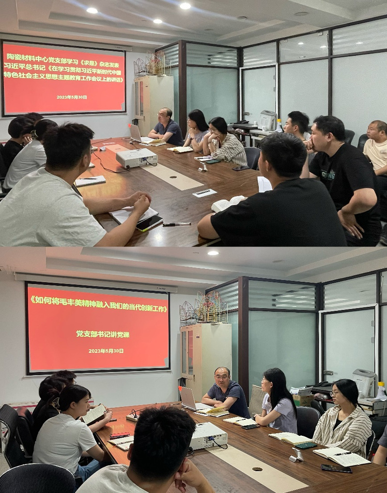 5月30日,先进陶瓷材料研究中心党支部开展学习贯彻习近平新时代中国特色社会主义思想主题教育专题学习,支部书记朱琦领学并讲授专题党课。