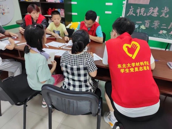 为热烈庆祝中国共产党成立102周年,继承和发扬党的光荣传统和优良作风,培养青少年的爱国情怀,6月28日下午和6月30日上午,材料学院春晖学生党员志愿服务队联合东大社区和迎湖园社区开展以“党旗飘扬鲜花艳,踔厉奋发谱华章”为主题的建党节主题志愿服务活动,东大社区党支部书记蒋德华、副书记刘彤、迎湖园社区党支部书记李岩、副书记王苑薇以及春晖学生党员志愿者参加本次活动。