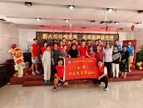 本次活动分为集体表演和“一对一”宣传讲解两部分。在集体表演阶段,以全员合唱《共产党好共产党亲》和《没有共产党就没有新中国》拉开帷幕,大家通过歌声表达对中国共产党成立102周年的祝贺。志愿者代表通过诗朗诵展现了中国共产党领导广大人民群众艰苦奋斗,实现国家繁荣和人民幸福的光辉历程。演员们用舞蹈、歌曲以及乐器演奏等多种文艺形式给在场观众带来了精彩的节目。整场演出节目形式多样、掌声热烈,饱含大家对党和祖国的无限深情与美好祝福。在“一对一”宣传讲解阶段,志愿者们来到迎湖园社区,给小朋友们讲述了党的百年光荣历史,并分享了自己的入党初心,将红色种子深深植根于小朋友们的心间。随后,志愿者们带领小朋友们一起歌唱家喻户晓的红色歌曲《映山红》《红星歌》等,小朋友们深情歌唱,歌声嘹亮,向伟大的党献上最诚挚的祝福。最后,小朋友们用绘画的方式表达了对党、对祖国的无限热爱与美好祝愿。