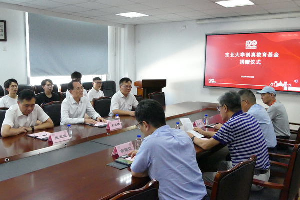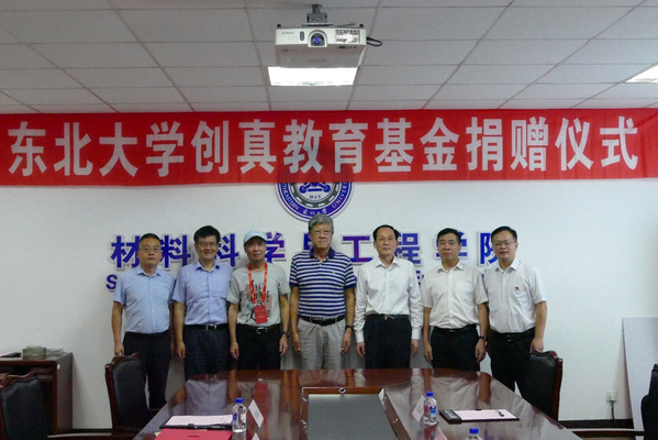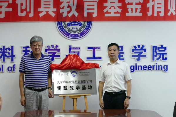 值此东北大学建校100周年之际,天津创真金属科技有限公司董事长于铁生向学校捐资50万元用于设立创真教育基金,全部资金用于助学金。于铁生和张玉宝代表企业和学校举行捐赠,并为东北大学-天津创真金属科技有限公司实践教学基地揭牌。王玉琦为于铁生颁发捐赠证书。