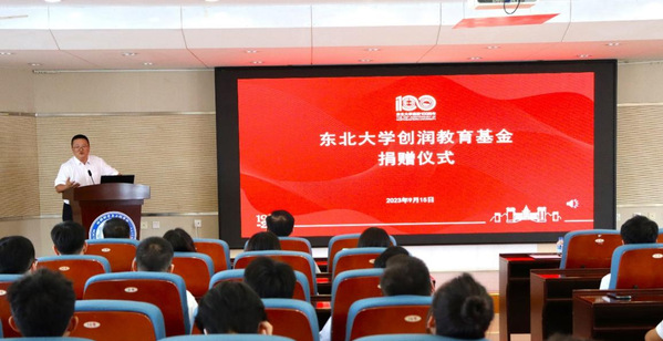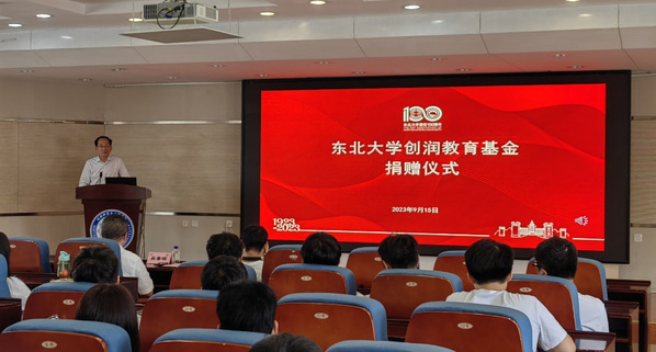 9月15日,东北大学创润教育基金捐赠仪式在知行楼634举行。东北大学92级金属压力加工专业校友、宁波创润新材料有限公司董事长吴景晖,东北大学党委副书记王玉琦,材料科学与工程学院党委书记张玉宝及百余名学生参加捐赠仪式,材料科学与工程学院党委副书记、副院长(兼)贺翔主持捐赠仪式。