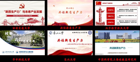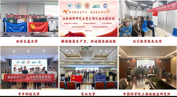 为贯彻落实习近平总书记给东北大学全体师生重要回信精神,加强同学们对全国两会精神的学习,深入了解“新质生产力”,进一步加强高校学生之间的学习与交流,近日,东北大学材料科学与工程学院材硕2207、2209、2302、2308党支部联合西安交通大学材料研究院S3023、S3026硕士党支部,北京航空航天大学前沿科学技术创新研究院增材制造学生党支部,华中科技大学材料科学与工程学院材料学研究生第四党支部,中国科学院上海硅酸盐研究所2023级研究生党支部采用“线下会场+线上会议”的方式开展了 “解读新质生产力,共话国家新征程”主题党日活动。