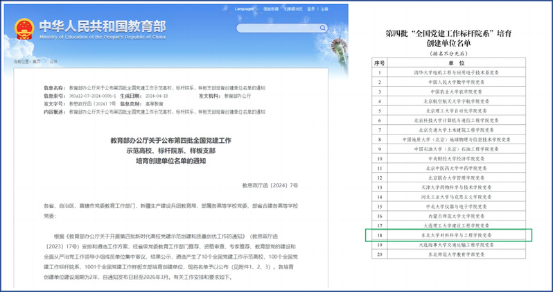 近日,教育部公布第四批新时代高校党建示范创建和质量创优工作遴选名单,我院党委入选第四批“全国党建工作标杆院系”培育创建单位。