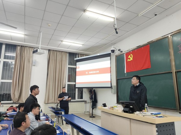 活动邀请到2020级毕业生党员于昊玮、材硕2107党支部党员王鹏、材硕2105党支部党员卜桐作为分享嘉宾,六个支部全体成员通过线上线下相结合的方式参加活动。材硕2302党支部书记董捷主持活动。