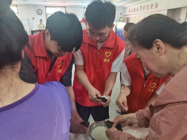 6月4日至7日,材料科学与工程学院春晖学生党员志愿服务队联合马路湾街道四平街社区和南湖街道东大社区开展“粽情千万里,志愿暖人心”端午节主题志愿服务活动,马路湾街道四平街社区党委书记戚春萍、东大社区党委书记蒋德华、副书记刘彤、王桂玲以及春晖学生党员志愿者参加本次系列活动。