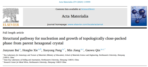 近日,东北大学材料学院秦高梧教授团队在扩散型固态相变领域取得重要进展,发现了非界面位错诱导的拓扑密堆(TCP)析出相形核与长大台阶生长新机制,完全不同于传统认知。相关成果以“Structural pathway for nucleation and growth of topologically close-packed phase from parent hexagonal crystal”为题发表于金属领域期刊Acta Materialia。东北大学为唯一完成单位,材料学院博士研究生白俊源为第一作者,庞学永副教授、秦高梧教授为通讯作者。