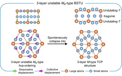 为阐明simple→complex扩散型转变涉及的形核-长大路径,该工作以镁合金为模型材料,使用第一性原理计算系统地研究了hcp结构Mg基体内一系列TCP相(包括Laves及Laves-like相)原位形核与长大的结构路径。通过引入TCP结构的晶体学新定义,理论计算确定了hcp→TCP析出转变中的基本结构转变单元(BSTU)为一种3层不稳定的hcp有序结构。通过第一性原理中的结构优化,这些BSTU有序原子团簇并不稳定,一旦它们在基体中生成便会自发坍塌形成TCP结构(图1所示)。并且整个结构演变过程均由此BSTU引导完成,致使hcp基体内TCP盘状沉淀的生成始于3层有序结构,并以2层原子为厚度单位增厚,其层数/厚度演变规律总结为:N=3+2n (其中N为TCP沉淀的总层数,n为增厚的次数),如图2所示。该结构演变路径得到了多项实验的证实,并且利用该路径该工作进一步评估了Mg2Ca及MgZn2两种Laves相析出过程中临界形成核的原子结构及尺寸。