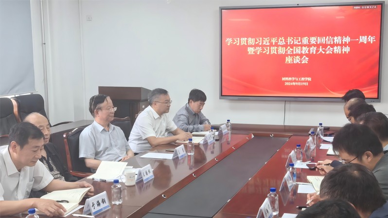 9月19日,材料学院学习贯彻习近平总书记重要回信精神一周年暨学习贯彻全国教育大会精神座谈会在知行楼424会议室召开。中国工程院院士王国栋教授,中国科学院金属研究所原所长、材料学院左良教授应邀出席。座谈会由学院党委副书记兼副院长黄晓颖主持。