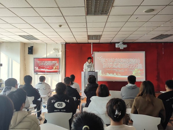 10月29日下午,材料科学与工程学院硕士2301、2303、2304、2313党支部在大学生活动中心300室联合开展“学习抗美援朝精神,汲取砥砺前行力量”主题党日活动,四个支部全体党员参加活动。材硕2304党支部书记宋士杰主持活动。