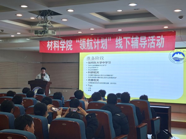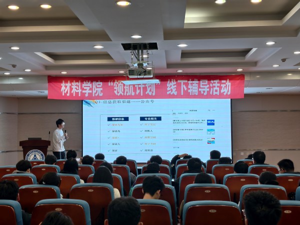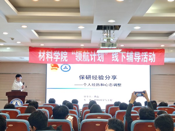 12月2日下午,材料科学与工程学院学生党总支在知行楼634室开展“领航计划”保研专题分享会。蒋方舟、黄磊、韩宇和钟斌四位2021级本科生应邀作保研经验分享,本科生百余人参加活动。