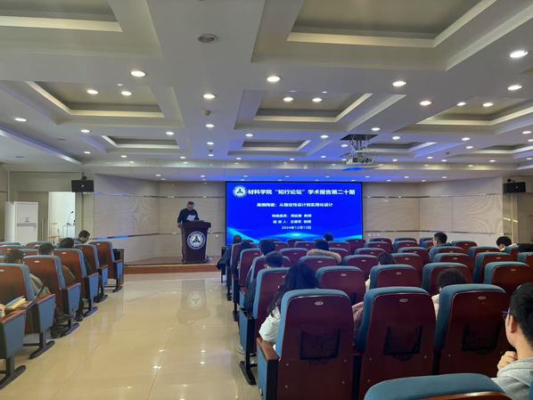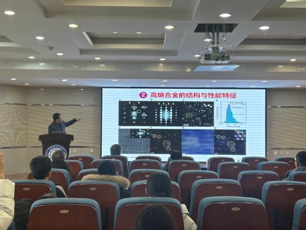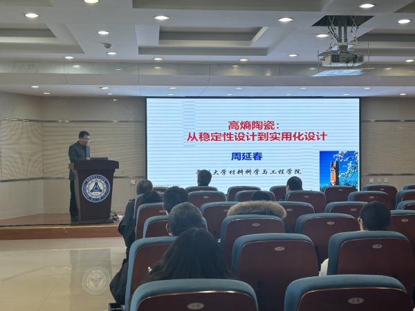 12月13日,应材料学院王建军教授邀请,郑州大学材料学院周延春教授作题为“高熵陶瓷:从稳定性设计到实用化设计”的学术报告。报告会由材料学院王建军院长主持,东北大学李晓东教授等50余名师生参加。