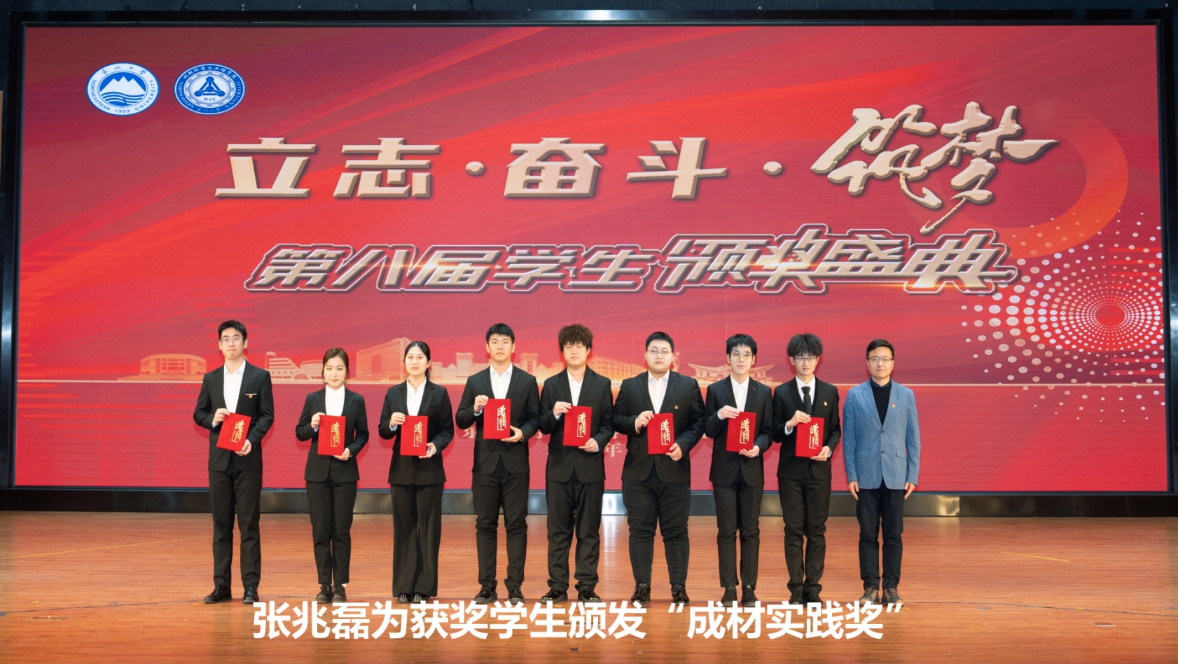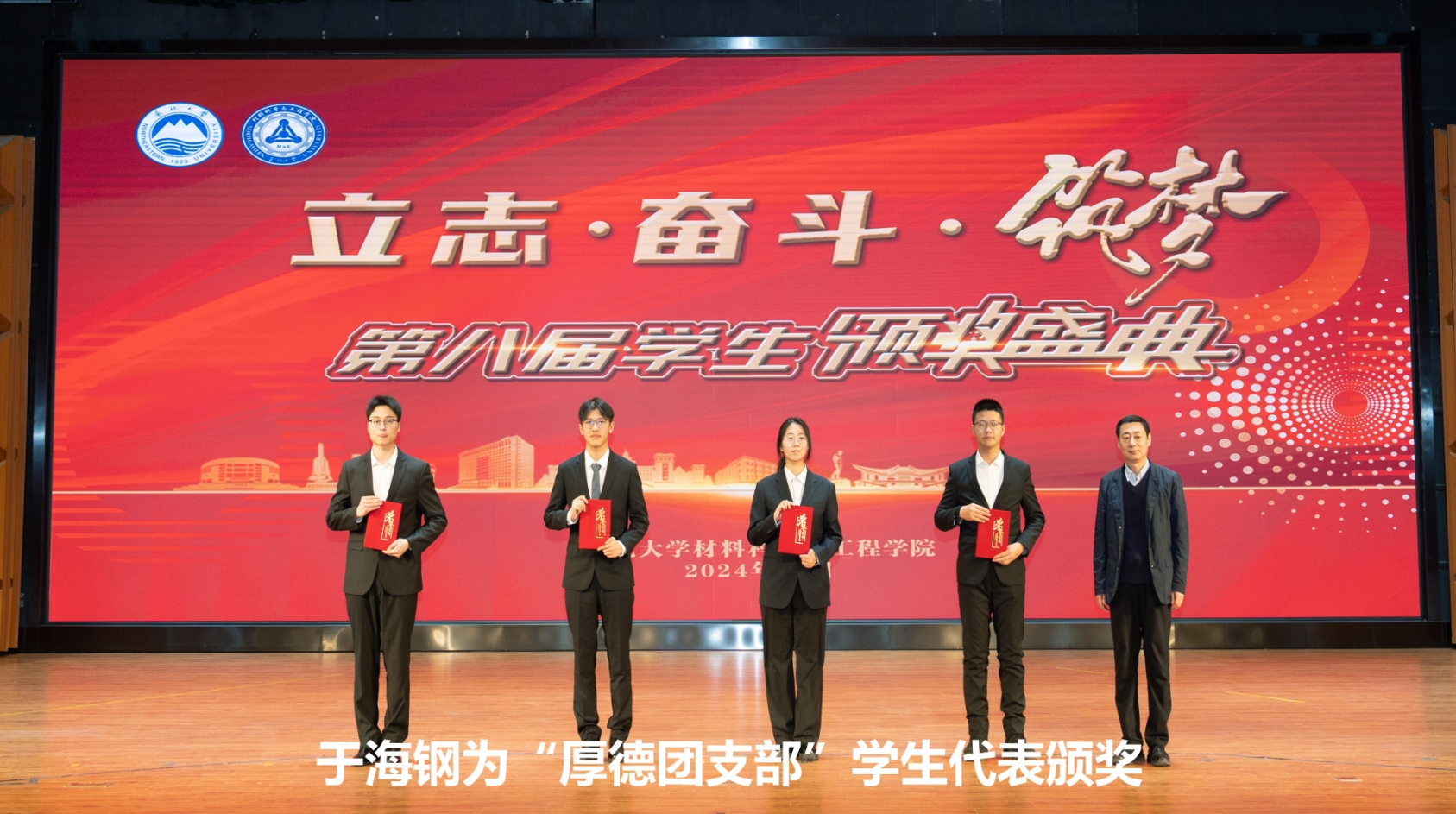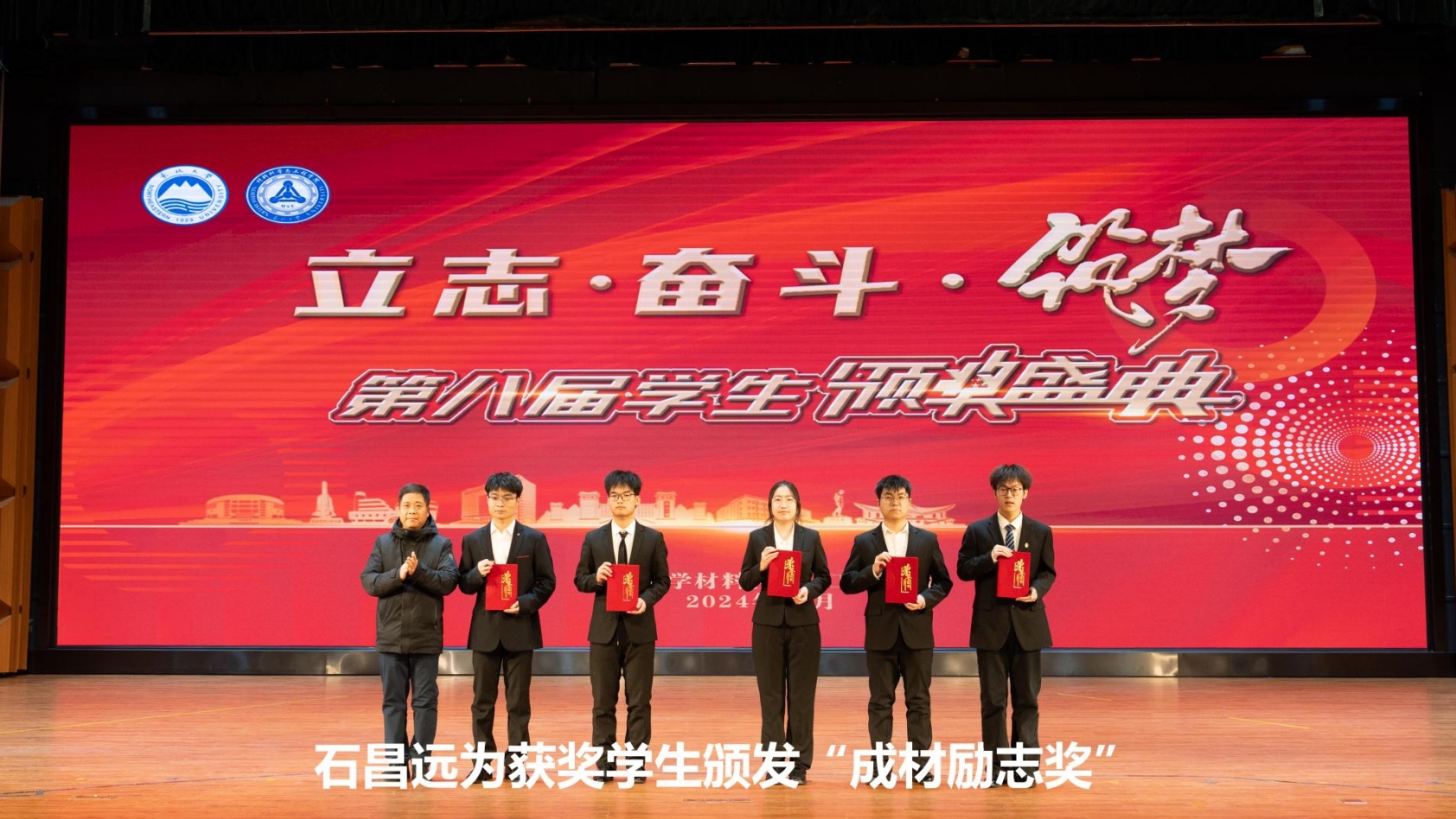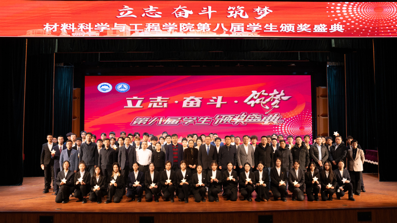 颁奖盛典分为“励志·奋进材料”“奋斗·出彩材料”“筑梦·卓越材料”三个篇章。与会嘉宾分别为获奖集体代表、学院教师及学生颁奖。