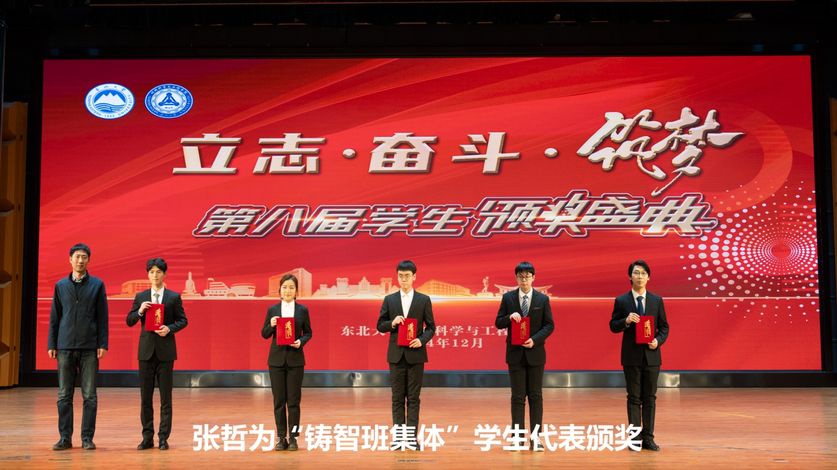 2024年12月23日晚,材料科学与工程学院“立志·奋斗·筑梦”第八届学生年度颁奖盛典于汉卿会堂蔡冠深报告厅成功举办。学生工作处处长张哲、对外联络与合作处处长马天威、创新创业学院常务副院长李鹤、共青团东北大学委员会副书记张兆磊、学生指导服务中心副主任石昌远,材料学院领导班子成员、优秀专业教师、班导师、学生工作办公室全体学生工作干部及450余名学生代表参加典礼。仪景通光学科技(上海)有限公司、沈阳元杰光学技术有限公司负责人应邀出席典礼。