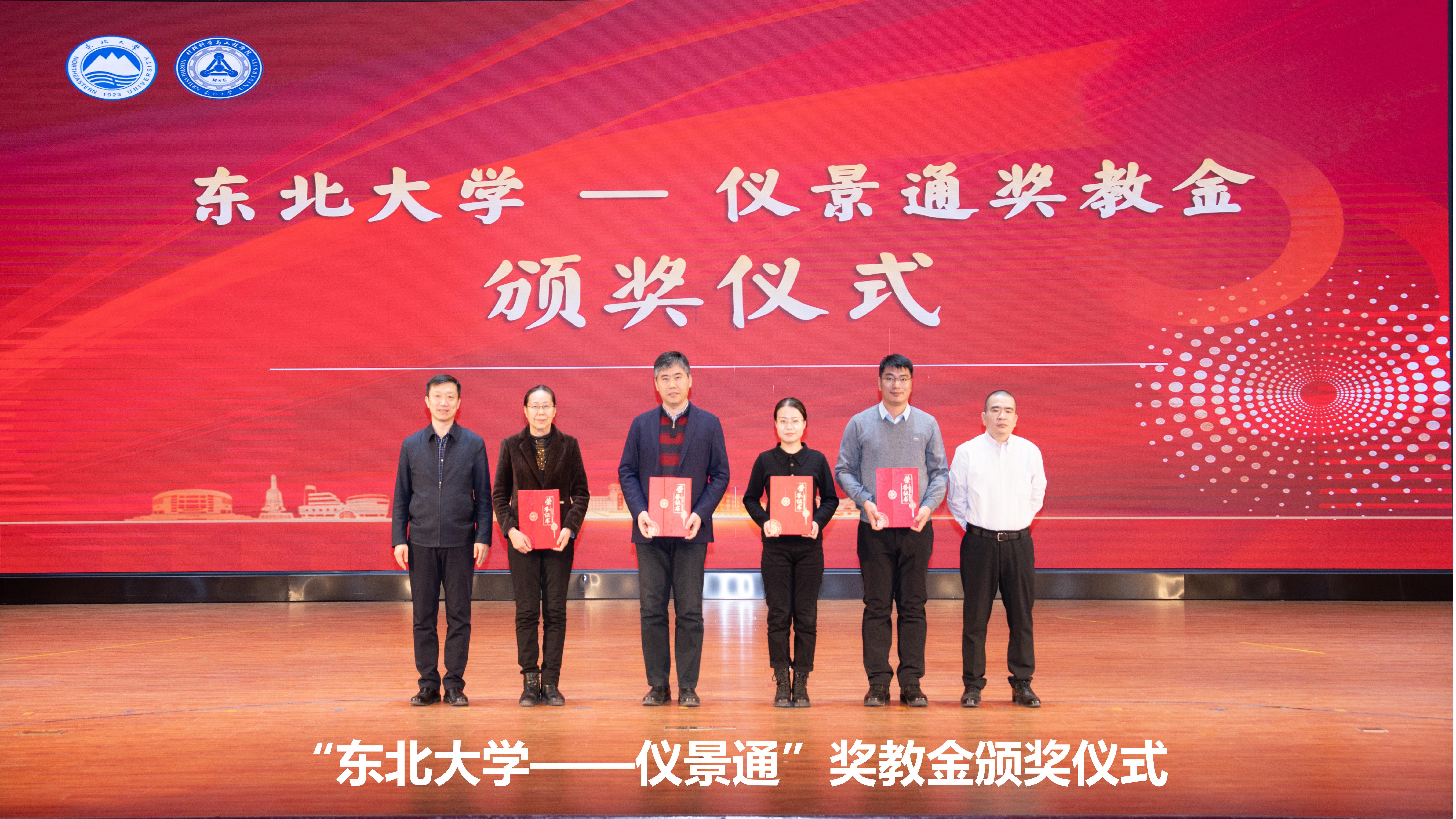 在“东北大学——仪景通”奖教金颁奖环节中,学院丁桦老师获特等奖,贾楠、李松、张二林、董磊老师获一等奖。仪景通光学科技(上海)有限公司材料科学高级总监陈宇飞、东北大学对外联络与合作处处长马天威共同为获奖教师颁奖。