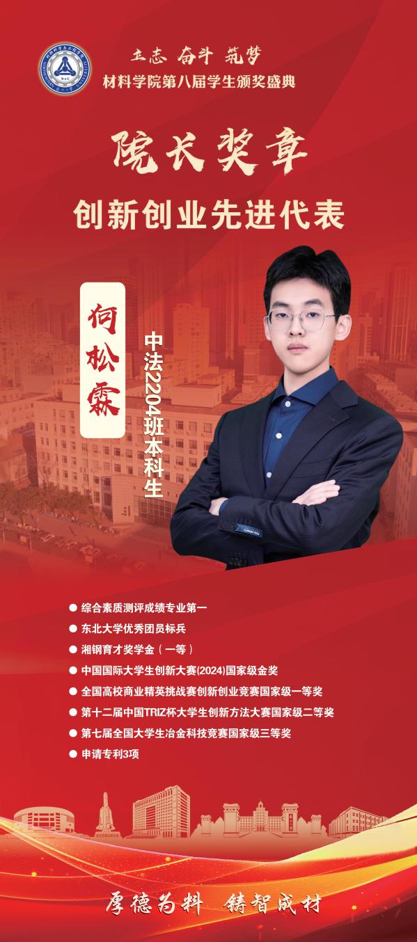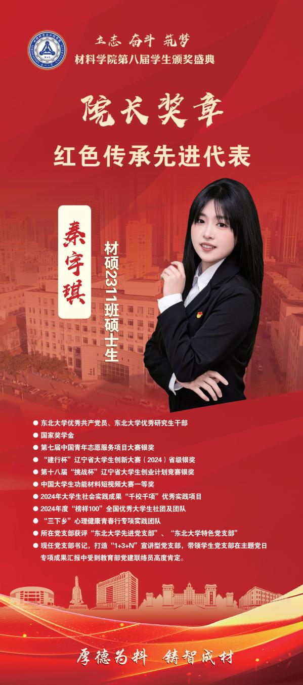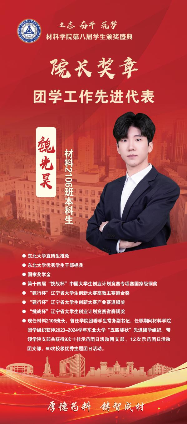 为强化理想信念引领,助推优秀朋辈领航,传播优秀文化,赋能学生成长发展指导体系,营造比学赶超,奋勇争先的优良学风,学院将2024年“院长奖章”获奖学生事迹作如下展示。让我们共同见证优秀东大材料学子代表们的卓越风采!