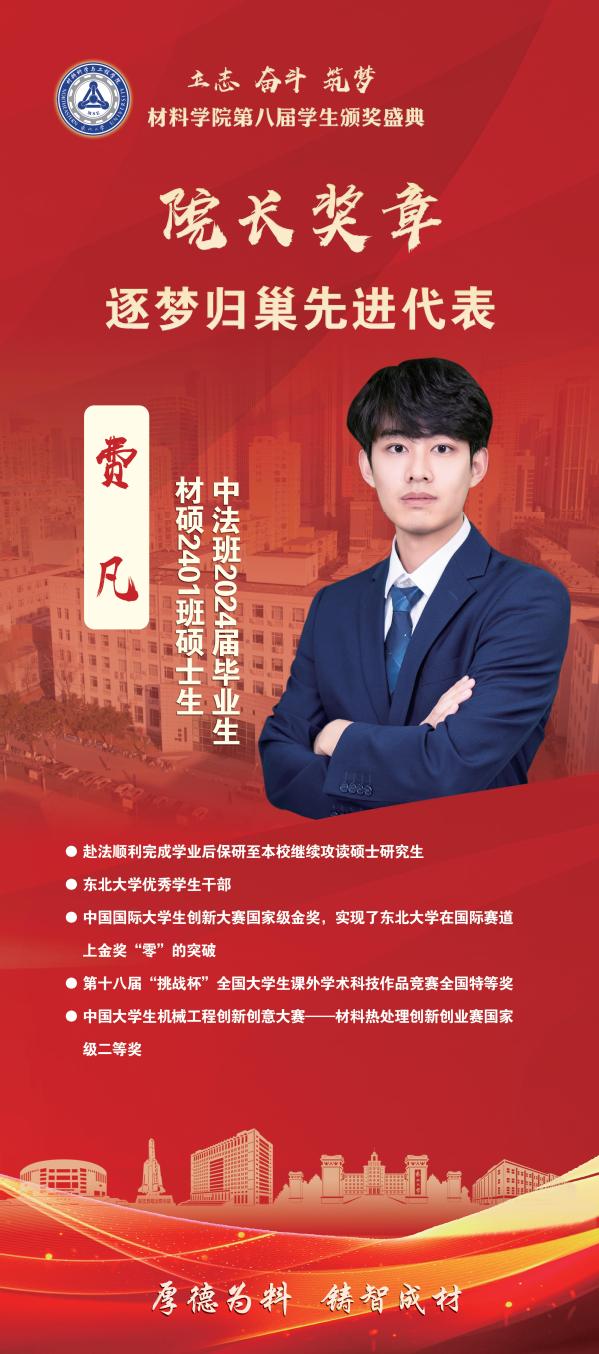 “心怀赤城家国情,追寻材料报国梦”是他最自豪的一张名片,在人生的岔路口,他面临过困惑,但从未感到迷茫。他是“院长奖章”获得者——2024级硕士生,费凡!