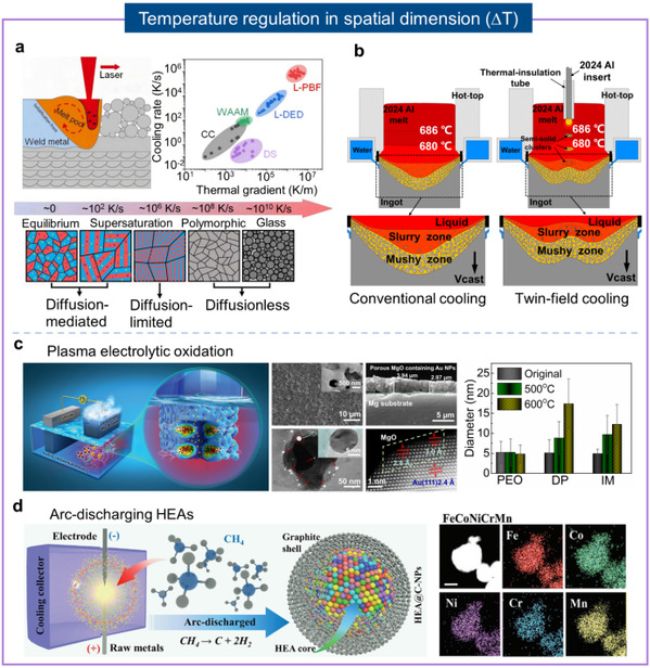 大多数材料加工技术通过辐射、对流或传导等方式使用外部能量将材料加热至高温。由于热源与加热区域之间的空间不匹配,在材料内部产生空间温度梯度。当温度梯度足够大时,会为材料的组成原子建立远平衡热力学环境,从而通过调控依赖过程(如原子扩散、晶粒生长和元素合金化)的相对动力学,促进形成非常规微观结构。