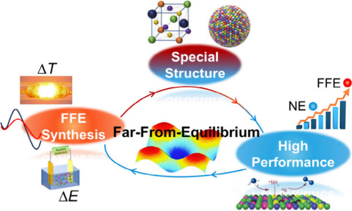 远平衡过程使材料处于偏离热力学平衡的条件下,从而为创造具有常规平衡方法无法实现的材料新特性提供了独特途径。在众多热力学参数中,温度是一个基本参数,它显著影响原子间的相互作用,决定了材料在不同温度范围内的稳定结构和组成。材料制备是一项关于平衡的艺术。传统的材料合成或加工中,精确控温至关重要。这是因为在时间尺度上,材料内部总是存在多个受温度控制的原子运动过程,材料最终所呈现的成分/结构正是这些过程所平衡的结果。远平衡制备方法在更短的时间尺度上、更宽范围内调控过程温度,可望解耦材料内部的子过程,使材料生长过程朝着希望的方向发生。无论是传统合金还是新型纳米材料,都大幅拓宽材料探索空间。