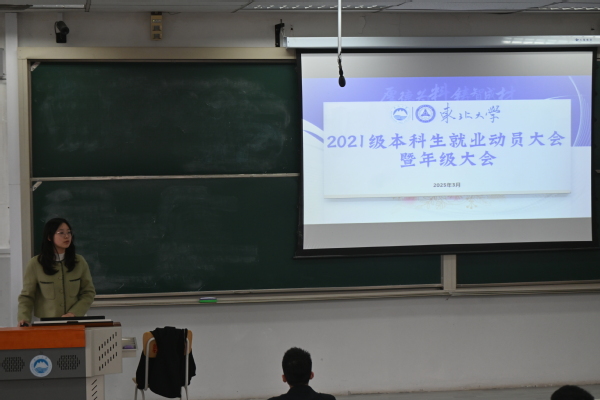东北大学2025届毕业生春季就业双选会在即,为高效推进本科毕业生择业、就业相关工作,2025年3月17日材料科学与工程学院于逸夫楼107教室召开2025届本科毕业生就业动员大会暨年级大会,对2025届毕业生进行分专业、针对性的就业与升学指导。学院党委副书记兼副院长黄晓颖、2021级本科生辅导员李晓曼、李刚及2021级全体本科生参加会议。
