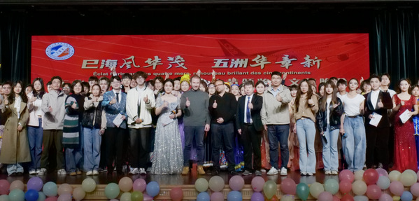 晚会节目形式丰富多样,不仅有武术表演《武韵华章》、古典舞《洛春赋》等中国传统文化表演,也有法国歌曲《Les maudits mots d’amour》、印尼歌舞《Maumere》等国际文化节目,更有法国名著《红与黑》节选音乐剧《叮咚》、《法语讲中国》等中法双语结合和文化融合的改编节目,丰富多元的精彩节目深受观众的喜爱。晚会前的“中法嘉年华”系列活动设置了漆扇、诗词接龙、猜灯谜等中国传统游戏摊位,以及法式滚球、法国宾果消消乐等法国文化体验展区,提升了同学们的文化参与感和体验感。