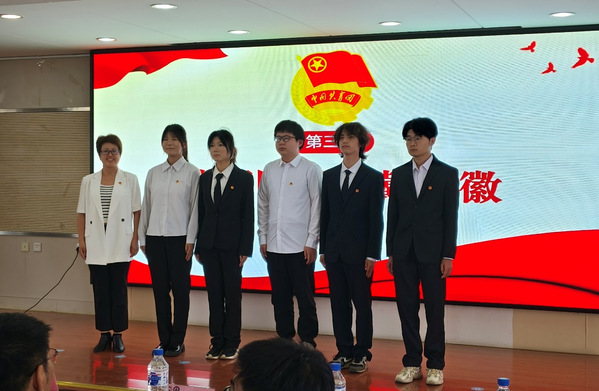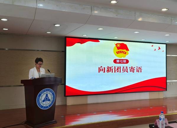 黄晓颖为新团员佩戴团徽,对新团员表示祝贺并提出寄语。她希望新团员积极发挥模范带头作用,加强理论学习,坚定理想信念;弘扬爱国传统,勇担报国使命;积极躬耕实践,做到知行合一。