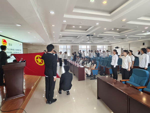 近日,材料学院在知行楼634会议室举行2025年上半年新发展团员入团仪式。材料科学与工程学院党委副书记兼副院长黄晓颖,学生工作办公室全体老师,团支部书记、优秀共青团员代表、35名新发展团员参加活动。