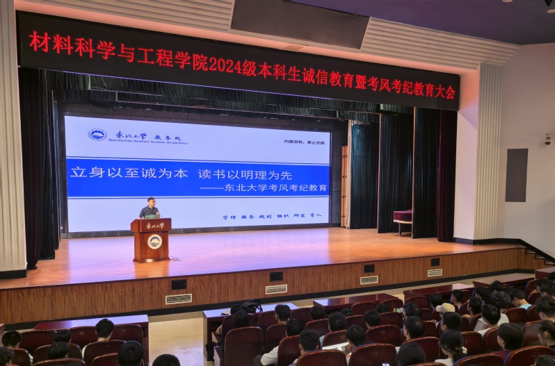 为深入强化学风建设根基,弘扬诚信为本的学风考风,切实保障考试公平公正,材料科学与工程学院于2025年6月25日中午在南湖校区汉卿会堂报告厅召开2024级本科生考风考纪主题教育大会,2024级全体本科生到场参会并认真学习了会议内容。